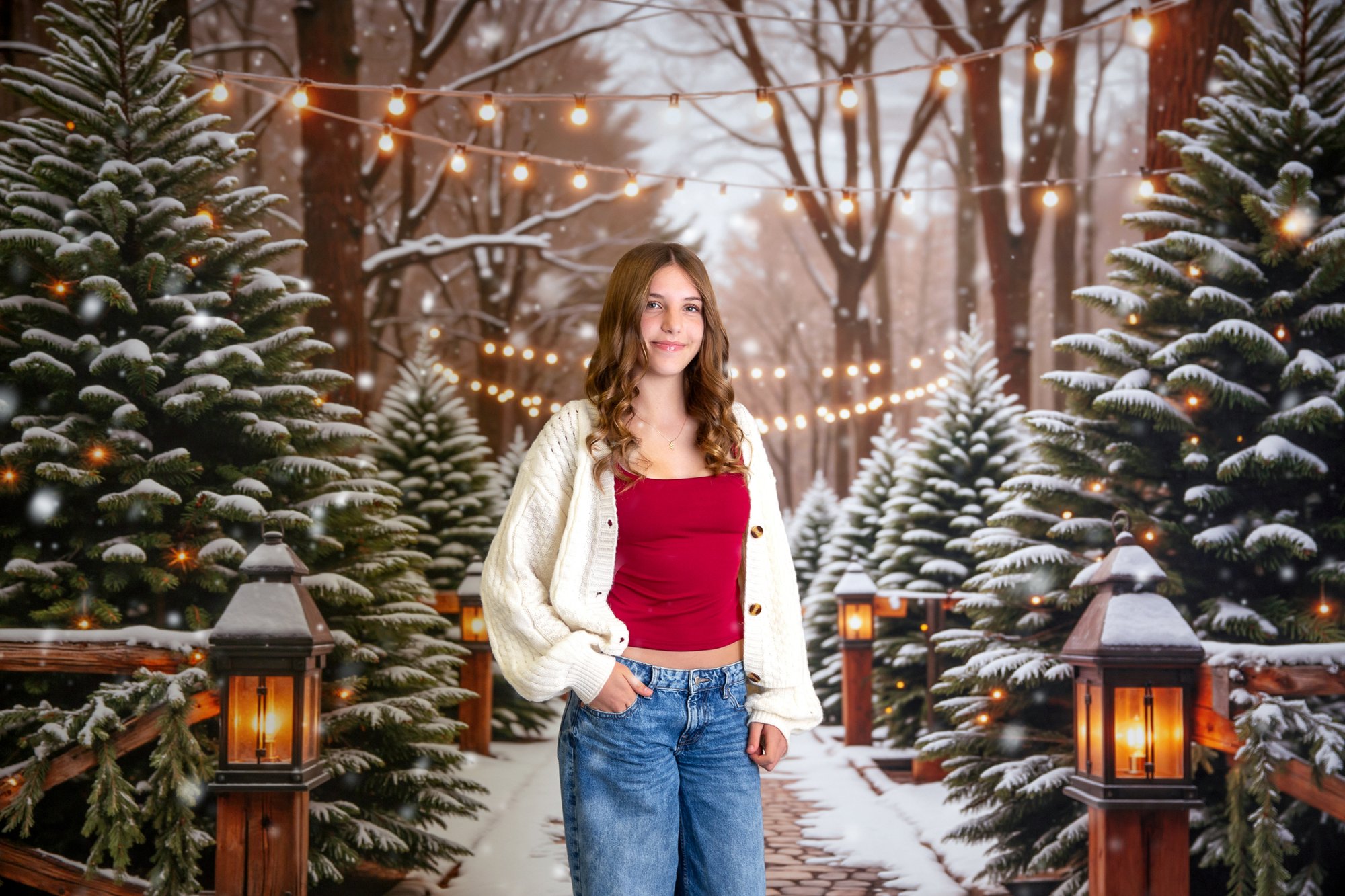 This backdrop gained lots of votes! A beautiful snowy pine walkway gives the perfect Christmas vibes for the Christmas card this year. You can dress it up, come in pjs, wear winter coats, etc. There will be props and you can add snow overlays to your final images at NO extra cost.
